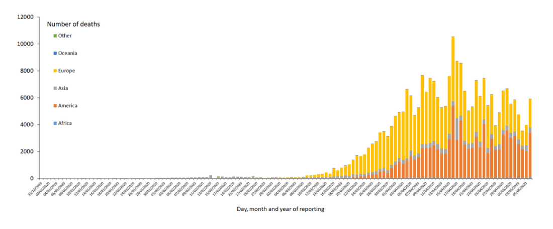 Asia: 20 361 deaths; the five countries reporting most deaths are Iran (6 340), China (4 637), Turkey (3 520), India (1 694) and Indonesia (872).